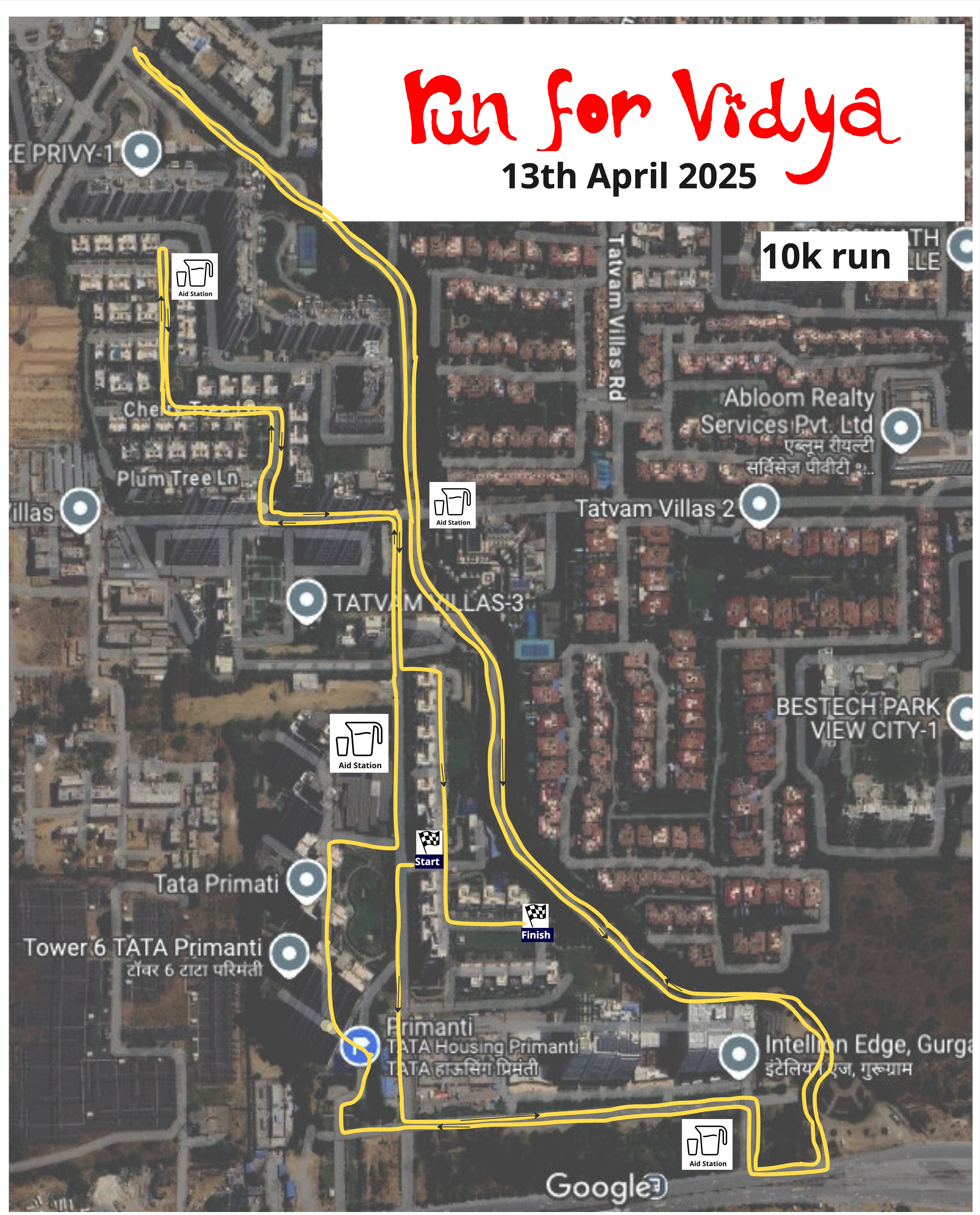 The ‘Run for Vidya’, will be organised in and around the Primanti Campus / Intellion Edge / Badshahpur Corridor (adj.to Primanti), Gurgaon